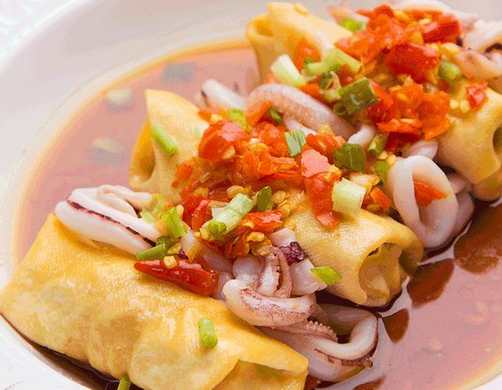1.豆腐皮大概切至邊長(zhǎng)為15厘米的正方形。 2.肉糜放在豆腐皮中間靠邊一點(diǎn),包裹起來(lái)外觀更加好看。 3.魷魚在蒸之前,一定要腌制片刻,除去腥味,入味提香,口感更佳。